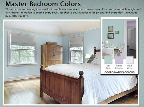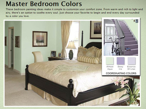主圖臥室選色貼近上篇文章我們介紹的薄荷綠,不過在此命名為Almost Aqua淺水綠,適合搭配霧中的鳶尾花或偏淺的紫丁香色來點綴。