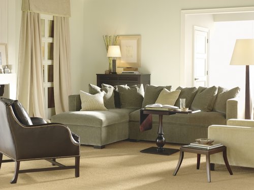 如果空間夠大,可以考慮Thomasville這組今年初剛上市的Simple Choice L型沙發,布料還是彷如男士訂製西服的淺灰條紋,中性優雅的特質能為現代空間帶入溫度。