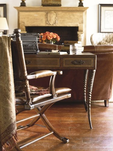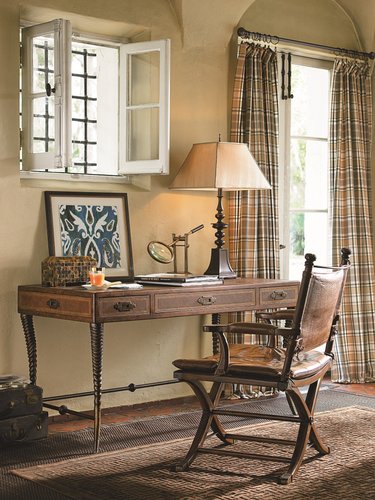 以這張寫字桌為例,以非洲野生羚羊角為造型靈感,搭配粗獷古銅把手、光澤低調的皮革鑲嵌在木質結構內,看似陽剛,但由多種細節細膩組合而成的復古氣質,又讓它比多數美式家具,多了幾分令人玩味的歷史深度。