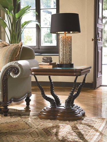 延續寫字桌以羚羊角為靈感的概念,邊桌桌角也採以不規則伸展的羚羊角造型,突破傳統桌腳規矩線條,更添異國況味。