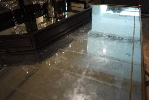 Alice Cocktail Table桌面嵌入品牌代表元素:類銀箔襯底的仿鏽鏡面,倒影裡斑駁懷舊的光影效果,相較於一般鏡面更顯出歷史雍容感。像是在多數巴黎老飯店玄關都會見到的掛鏡,Lillian偏愛採用此素材,無非也是希望將起居時空帶回優雅從容的老巴黎吧!