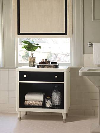It’s Black and White邊櫃,名副其實只有黑與白的配色,勾勒出時尚線條及層次感。擺在乾濕分離的浴室乾燥區,擺放鮮花、擴香和毛巾,多麼高雅有氣質啊!