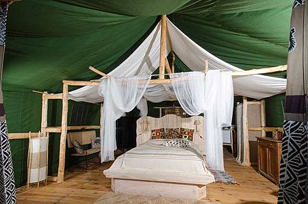 有的房型是以類似馬戲團的帳篷加竹子結構打造,充滿異國風情。