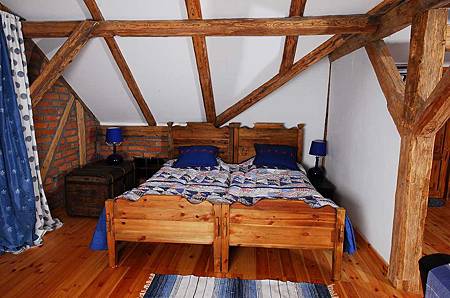 房間依循舊房舍的結構來規劃,可以體會到睡在斜屋頂下的歐式臥舖風情。