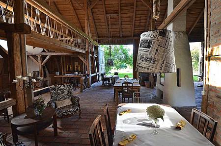 從前農業活動需要堆高麥稈、方便拖車進入而打造的大型門扉,也是主屋的一大特色,現在這裡也是房客用餐的餐廳、酒吧位置。
