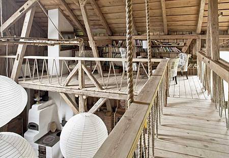 旅社主屋公共區域是一間舊穀倉,屋主維持原有的木造挑高結構。
