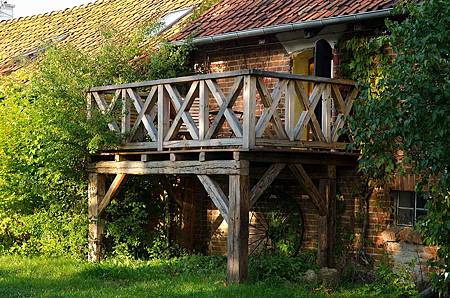從前農村建築,住戶起居、睡覺都在二樓,一樓是飼養馬匹或牛隻的地方,所以民宿起居空間多半也在二樓。