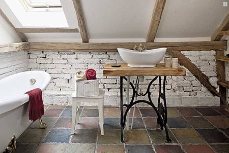 浴室多配有復古貴妃浴缸,周邊建材也盡量挑選顏色觸感質樸的材料,以便符合百年農舍的歷史感。