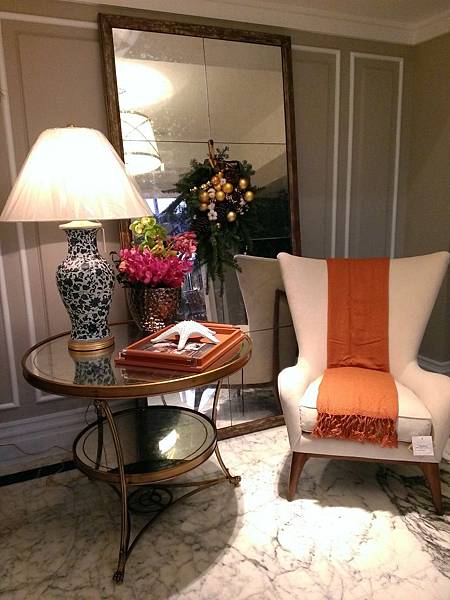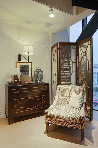 帶折衷主義色彩的金邊橢圓大褂鏡,是Hickory Chair的設計師Thomas O’Brien代表作品之一,也是此次開幕全新商品。
