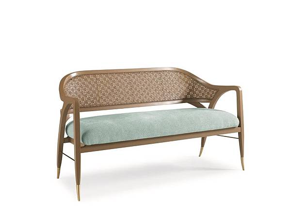 Caracole新品雙人扶手椅,椅身採用香甜的焦糖色彩,搭配淡淡的薄荷綠座椅,椅背採用傳統法式家具常見的藤編元素,但編織出來的圖騰是雪花形狀,更顯時尚浪漫。因為椅面寬度和深度都小巧,擺在走道盡頭、床尾或客廳窗邊,都有自成一格的浪漫魅力。