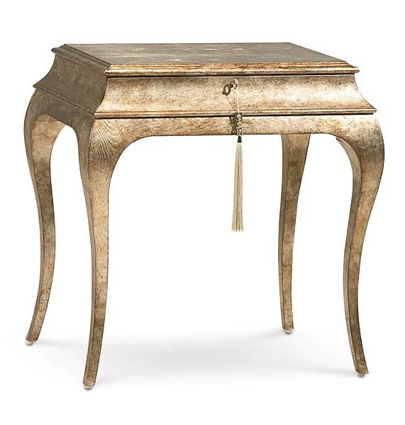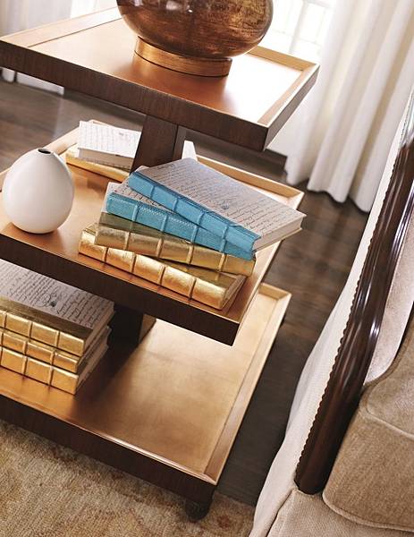 這件Caracole新品小邊几,造型看得出傳統法式風味,以特殊漆料刷出濃淡不均的金漆表面,隱約透出底下木頭紋理,是一張別具懷舊風情、能協助提升客廳沙發質感、藝術感的加分單品。