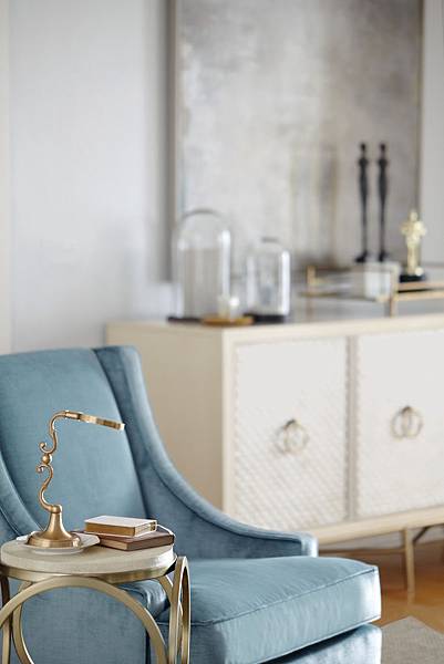 Bernhardt這件ART DÉCOR風格的小邊桌,桌面的米白色皮革質感,帶有些許古典風華,能加深空間的尊貴印象。
