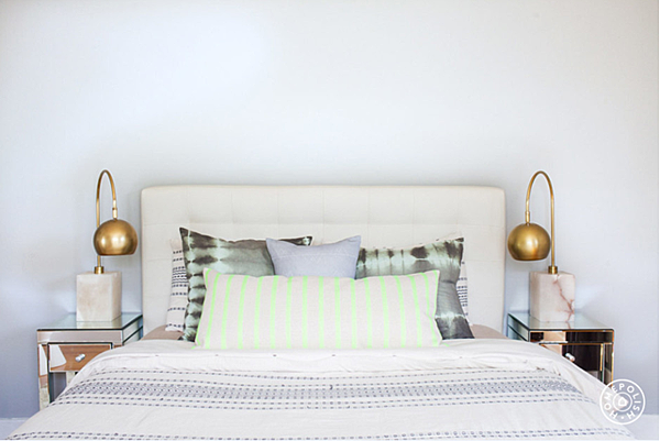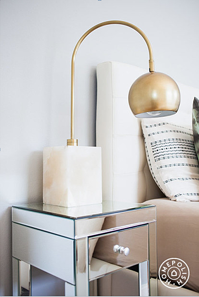 再運用 時髦的鏡面床邊櫃 與 低調金床頭燈,為空間注入亮點!