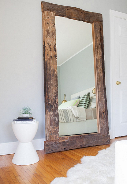 而女生一定要有的穿衣鏡,則選擇木質粗框的高聳立鏡 靠站於牆面,