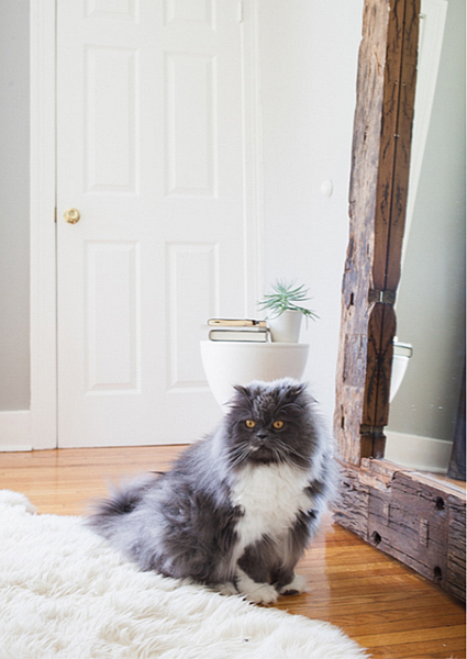 就連家裡的寵物,黑灰白長毛的高雅色調 竟然也跟居家設計如此融合呢!